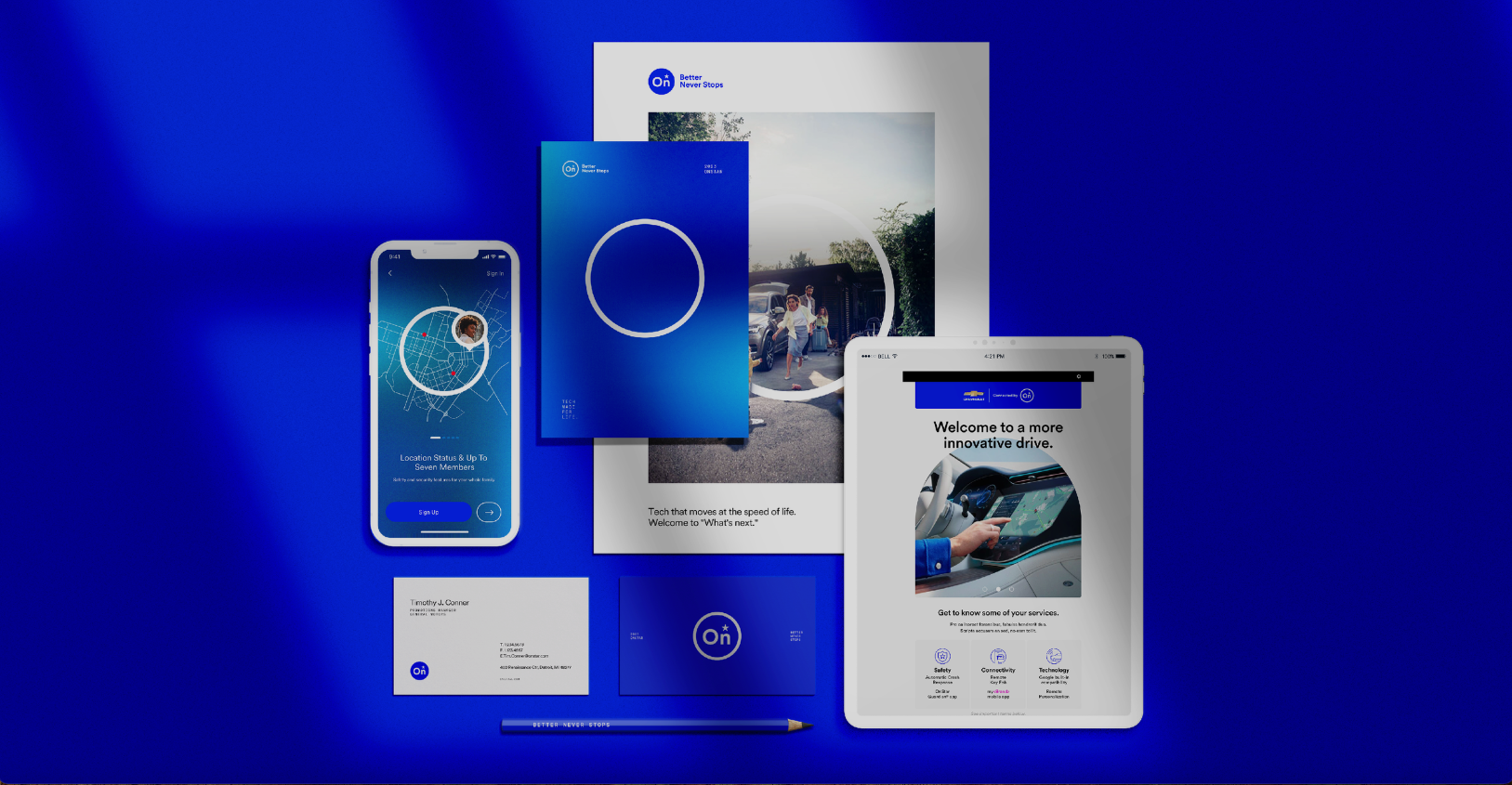 In 2023, we introduced OnStar as GM’s tech-ingredient brand. Long synonymous with safety and security, OnStar needed a new tech-forward look and feel that felt modern, sleek and dynamic. This included a new brand tone and product language that was conversational, benefit-driven and innovative.